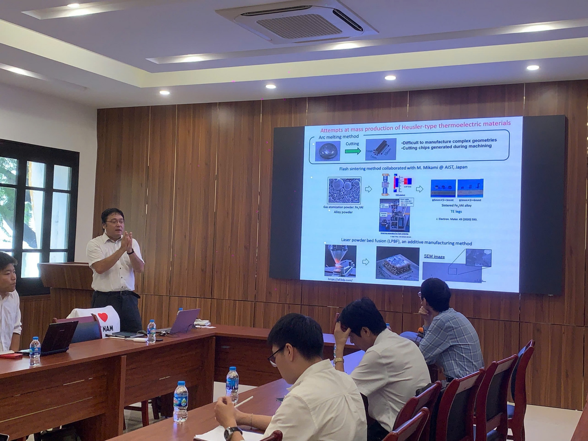 - GS. Hidetoshi Miyazaki trình bày về vật liệu nhiệt điện Heusler (Fe₂VAl) – giải pháp chuyển đổi nhiệt thải thành điện năng, hướng đến công nghệ thu hồi năng lượng thân thiện môi trường.
