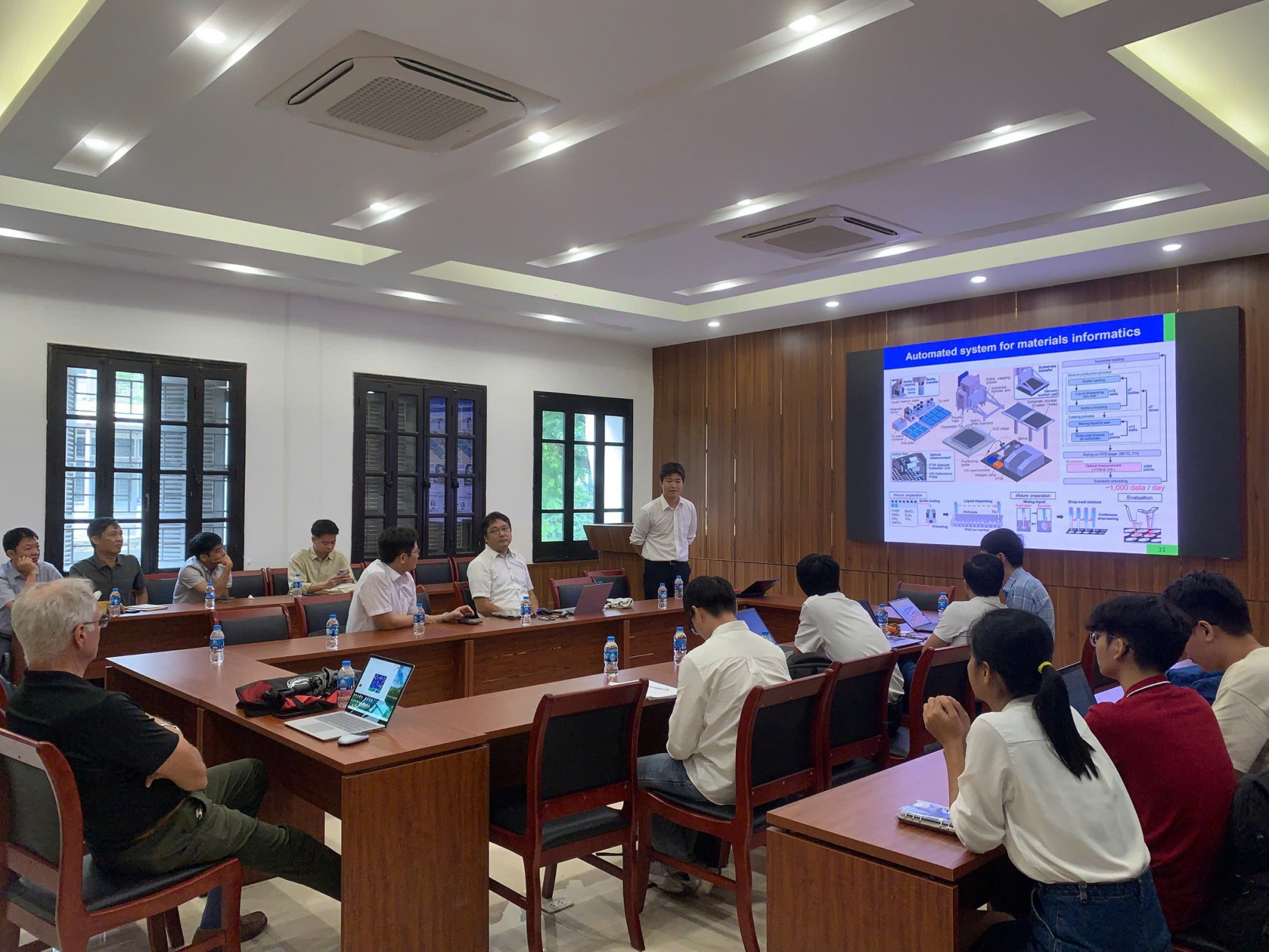 - GS. Kunihiko Shizume trình bày nghiên cứu về vật liệu lưu trữ nhiệt hóa học, kết hợp Materials Informatics và robot tự động hóa để rút ngắn chu trình khám phá vật liệu mới – một hướng đi phù hợp với định hướng số hóa và trí tuệ nhân tạo trong nghiên cứu vật liệu của SMSE