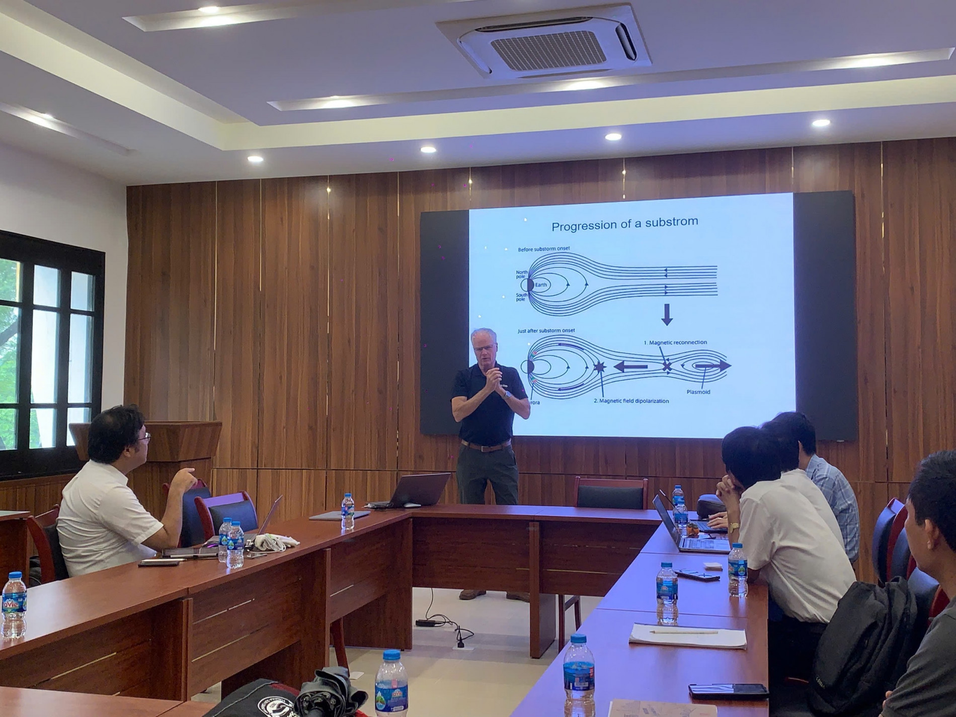 - GS. Daniel L. Holland chia sẻ nghiên cứu về động lực học hạt tích điện trong đuôi từ Trái Đất, giải thích hiện tượng hỗn loạn plasma bằng mô hình số mũ Lyapunov và dữ liệu vệ tinh Geotail/Cluster.